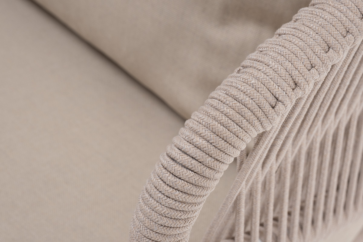 "Милан" кресло плетеное из роупа, каркас алюминий белый муар, роуп бежевый круглый, ткань бежевая 035