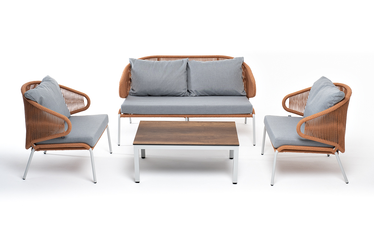 "Милан" лаунж-зона 4-местная плетеная из роупа (веревки), каркас алюминиевый светло-серый, роуп оранжевый меланж